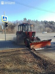 Помимо этого, дорожники чистят прилотковки как вручную, так и с помощью спецтехники - нового пылесоса-регенератора и погрузчика. Коммунальщики уже очистили участки улиц Ленина, Калинина, Мухина, Зейской, Театральной, Амурской, Октябрьской, Красноармейской. Сегодня днём они работают на Театральной от Ленина до Конной, Мухина от Пролетарской до Октябрьской, Чайковского от Конной до Октябрьской, Красноармейской от Калинина до Шевченко, Театральной от Заводской до кольцевой развязки на Театральной.