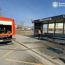 Автобусные остановки начали принимать «душ» от коммунальщиков. К мытью павильонов приступили 7 апреля: работают на Ленина от Шевченко до конечной «пятёрки», на Институтской и Игнатьевском шоссе.