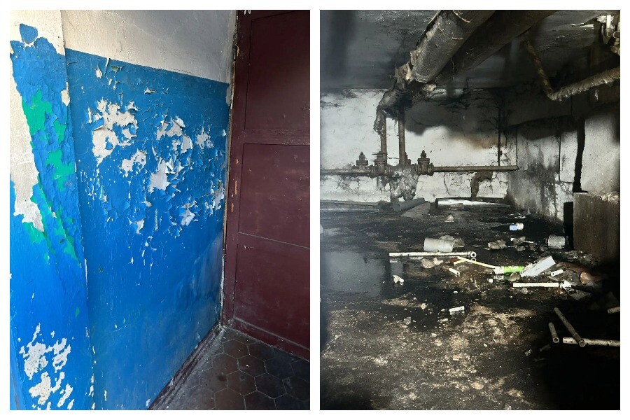 – в подъездах № 1 и № 2 частичное отслоение штукатурного и окрасочного слоя на стенах; присутствуют предметы (тумбы, шкафы, кресла), создающие пожаро-опасную обстановку;