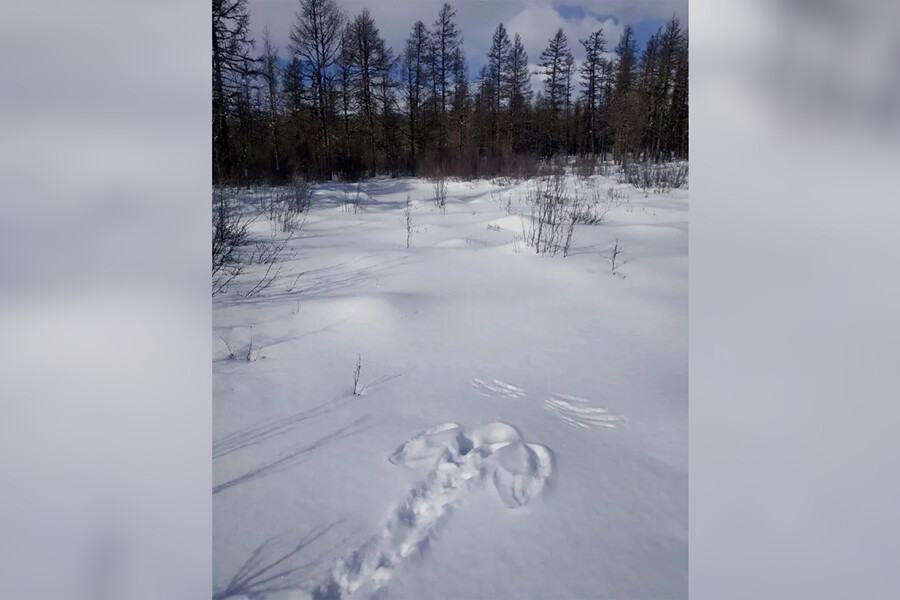 Зейский заповедник опубликовал интересное фото. На снегу, которого в здешних краях, несмотря на наступление весны, еще много, виден след ангела – как будто он полежал на снежном покрывале, а потом взлетел.