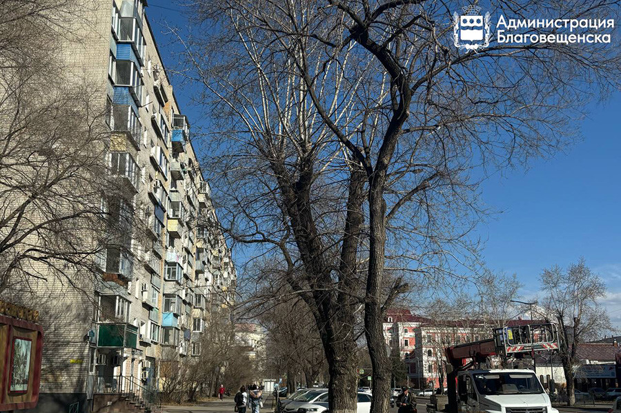 Пятиметровые саженцы высадят в Благовещенске на улице Ленина между Островского и Шимановского. Предварительно территорию обследовали и выявили 12 аварийных тополей. Сегодня сотрудники ГСТК начали спиливать старые деревья.
