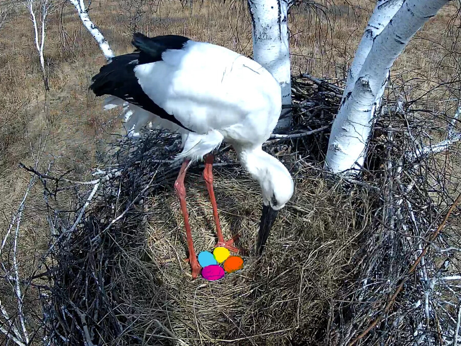 Самая известная пара амурских аистов Амура и Зеи также поддержала всеобщее празднование Пасхи. В паблике «Птицы Амура» появилось фото гнезда с четырьмя разноцветными яйцами.