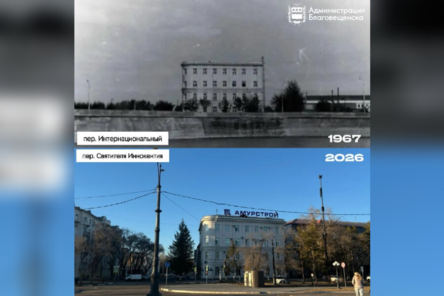 На одном из фото, предоставленном городской администрацией, запечатлен переулок Святителя Иннокентия со стороны Амура. Снимок сделан в 1967 году, тогда он назывался Интернациональным. А еще раньше он был Американским, так как здесь находилась первая в Амурской области американская торговая фирма. В честь одного из основателей Благовещенска этот переулок назвали только в 1997 году.