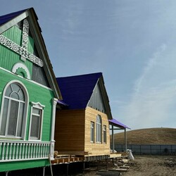 Строители возвели каркасы домов, занимаются отделкой, проводят на объекты коммуникации. Домики, которые выходят на Амур, будут покрашены в зеленый цвет. Это будущие торговые павильоны. Из их окон хорошо видно набережную города Хэйхэ, китайский флаг, колесо обозрения.