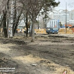 В Благовещенске приступили к благоустройству сквера за Благовещенским педуниверситетом. Подрядчик завершил демонтаж и перешёл к земляным работам: выполняет разбивку территории. После этого начнётся монтаж бортовых камней.