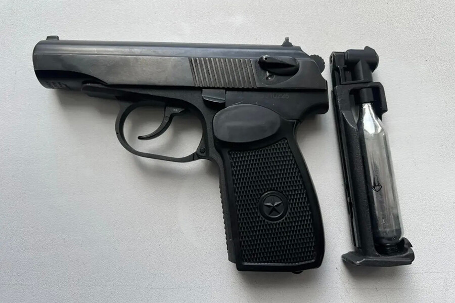 Но стационарный металлообнаружитель выявил в ее сумке пневматический пистолет.