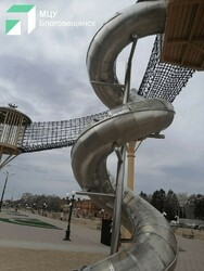 В областном центре на детской горке, расположенной на набережной Амура в районе улицы Пионерской, выявили дефект – вышла из строя труба-горка. Неисправность обнаружили сотрудники ГСТК, которые постоянно обследуют популярный детский комплекс