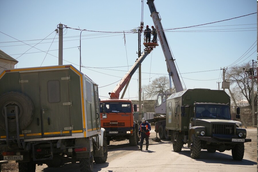 Для восстановительных работ привлекли кран, автовышку, буровую установку, а также длинномер для доставки опоры и бригадный автомобиль.