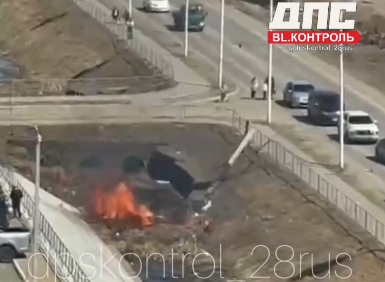 На улице Василенко напротив микрорайона «Тепличный» произошло ДТП с возгоранием. Судя по всему, авто вылетело с дороги и загорелось.