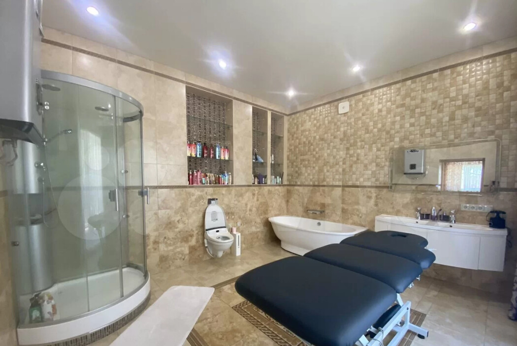 «Летом вы можете отдыхать в уютном гостевом домике, он находится прямо на территории дома. В доме 4 спальни, 2 кабинета, большая гостиная, кухня, гардеробная, джакузи, 5 санузлов, по одному на каждую спальню! Есть цокольный этаж с финской сауной) Ещё тут есть кедровая бочка, место отдыха и большие диваны», – рассказывает продавец.