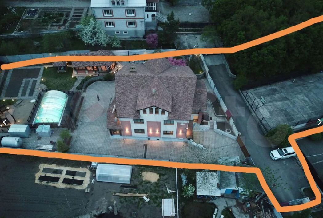 «Участок прямоугольной, хорошей геометрии, прямой, площадь участка 8 соток, в собственности. Участок поднят, отсыпан на 70 сантиметров. Высокий кирпичный забор на фундаменте по всему периметру. Автоматические ворота. Калитка. Система видеонаблюдения. Видеодомофон», – пишут владельцы дома.