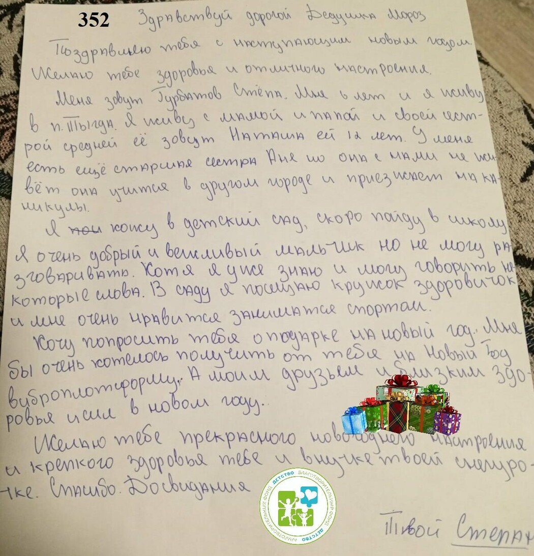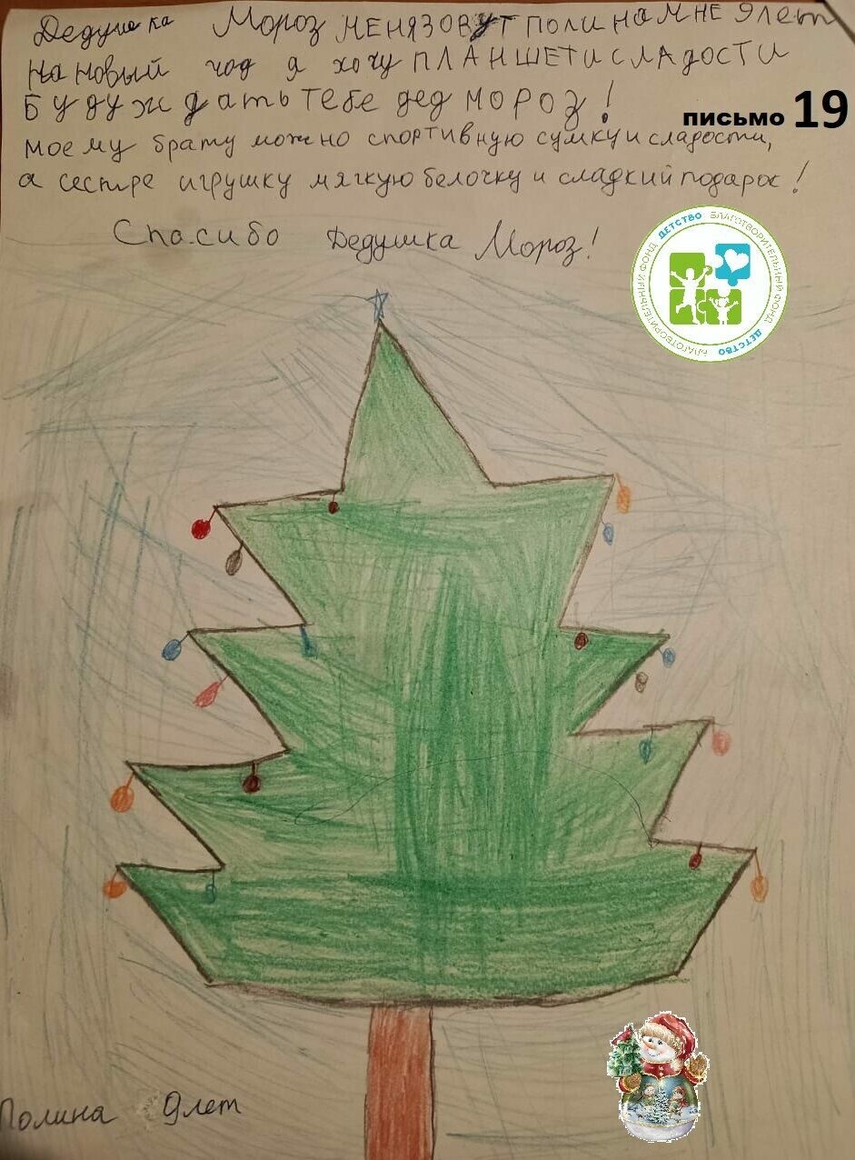 Чтобы стать частью новогоднего чуда, можно выбрать письмо из электронной базы писем фонда https://fond-detstvo.ru/magazin, приобрести подарок и принести его по адресу: ул. Комсомольская, 89, БФ «Детство» до 5 декабря. Амурчане уже исполнили мечты примерно 140 нуждающихся в чуде детей.