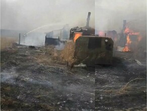 Сильный пожар случился ночью в районе КПП Благовещенска