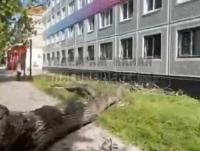 С многоэтажки Благовещенска сорвалась огромная глыба снега, повредив часть дома (видео)